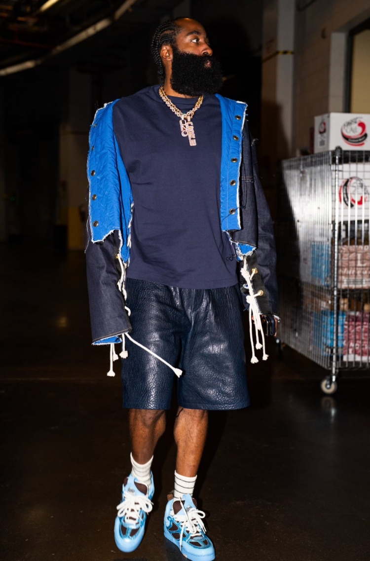 帅哥你谁?哈登拉风上衣搭配皮质短裤 优雅又时尚