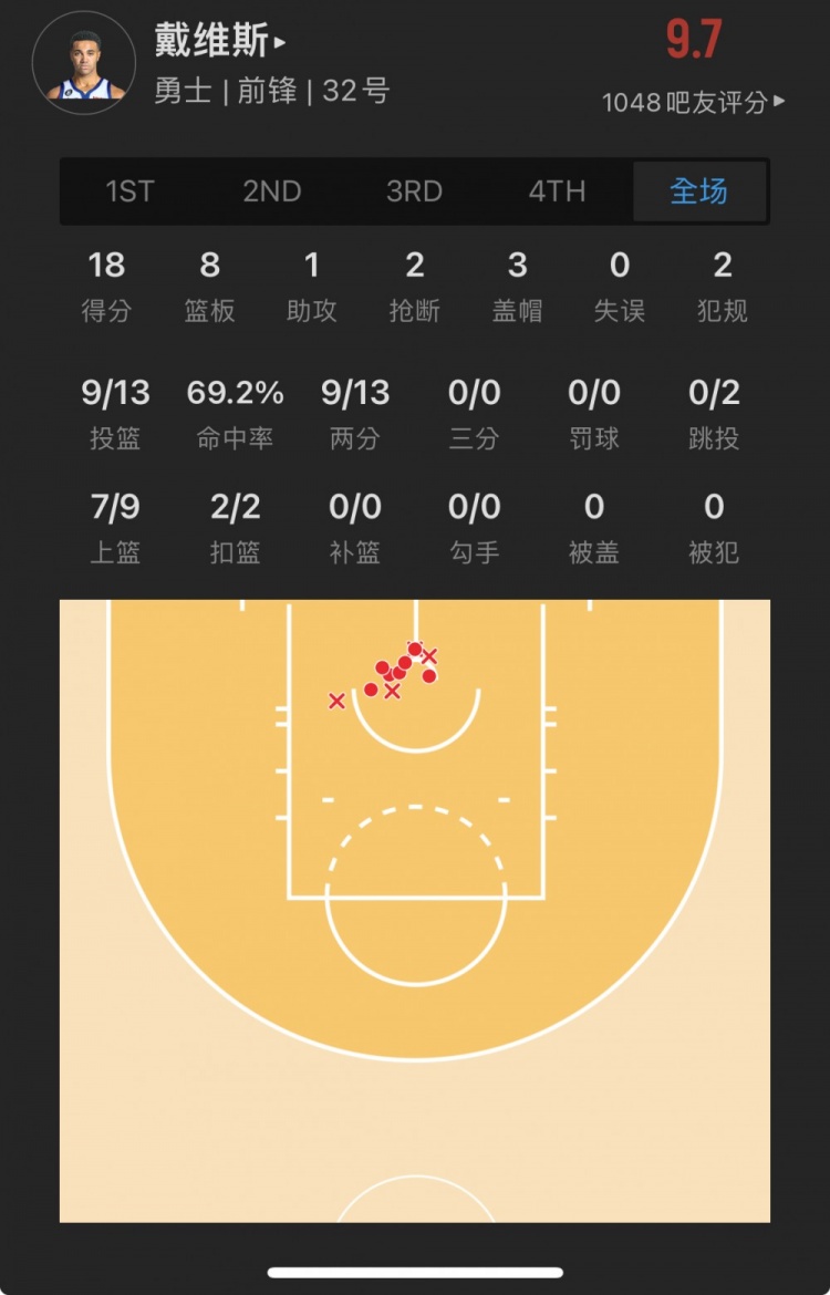 勇士57号秀 特雷斯-杰克逊-戴维斯 出战30.8分钟