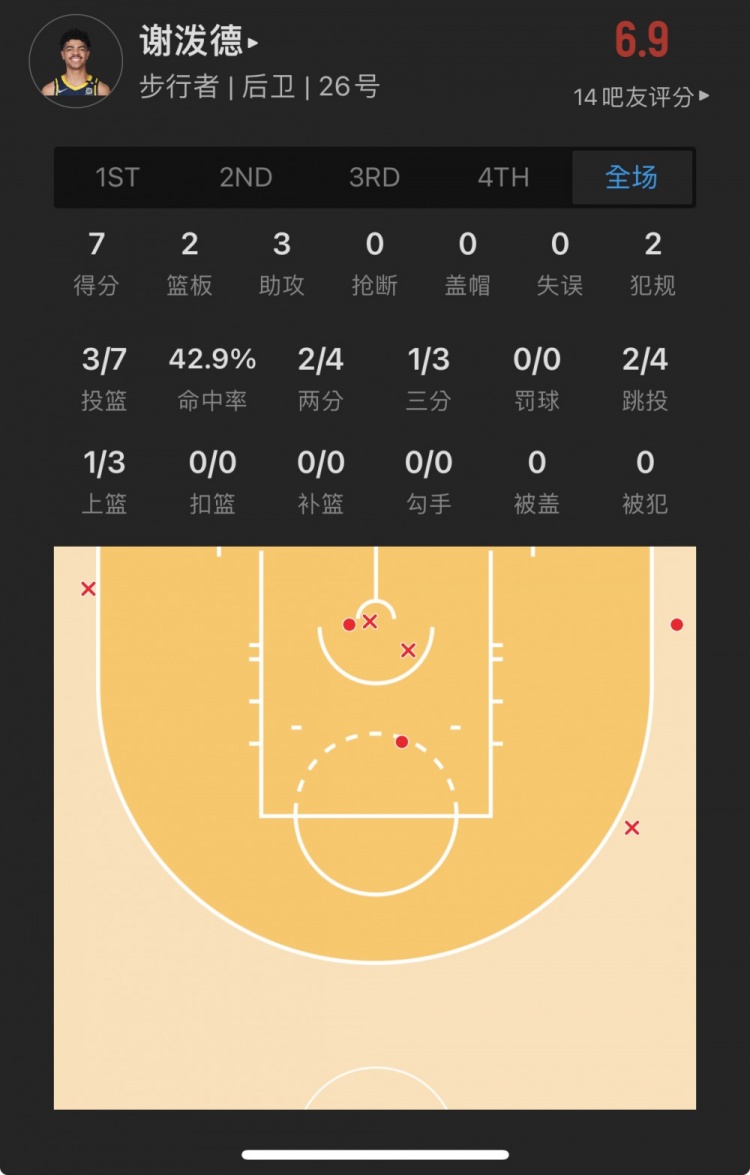 步行者26号秀 本-谢泼德 出战19.7分钟
