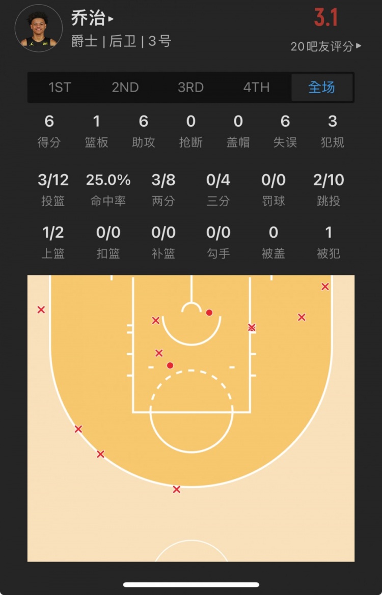 爵士16号秀 基昂特-乔治 出战29.1分钟
