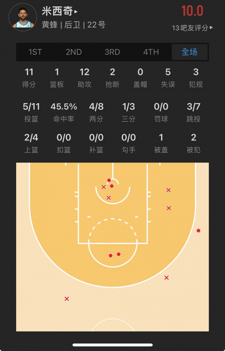 黄蜂14届52号秀 瓦西里耶-米西奇 出战32.8分钟