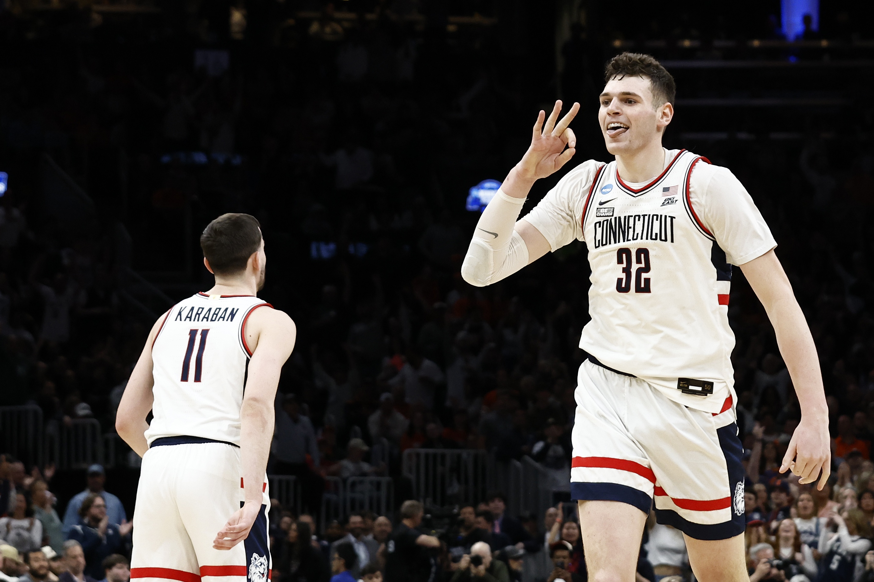 03月31日讯 NCAA疯狂三月精英八强首场比赛,卫冕冠军康涅狄格大学以77-52大胜伊利诺伊大学,杀进最终四强。