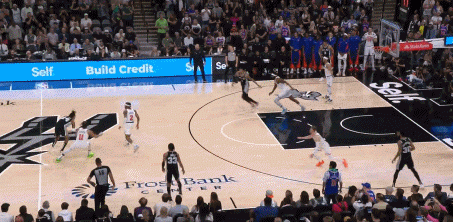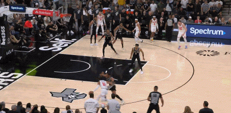 加时还剩38秒,文班亚马进攻中被横移的米切尔-罗宾逊绊倒,裁判漏吹米罗的防守犯规。↓