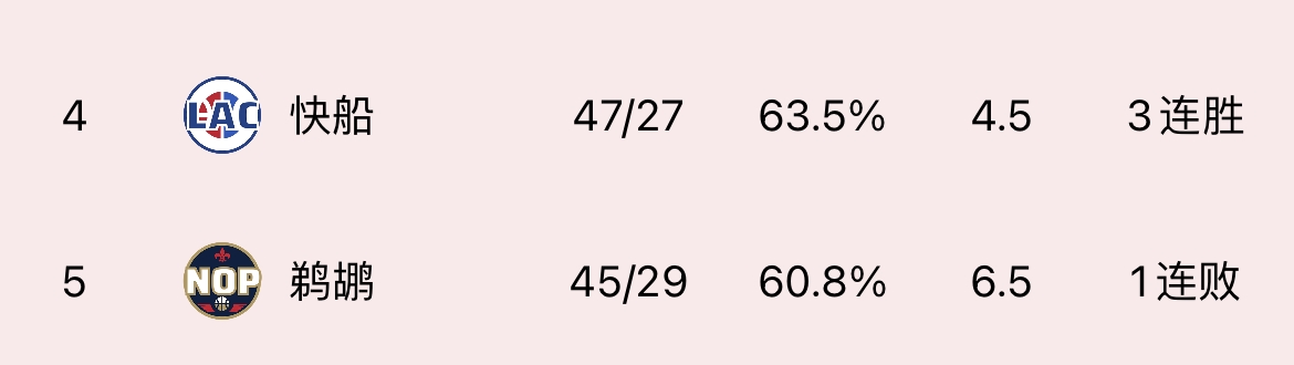 这样,快船领先鹈鹕2个胜场了,而两队只剩下8场比赛。