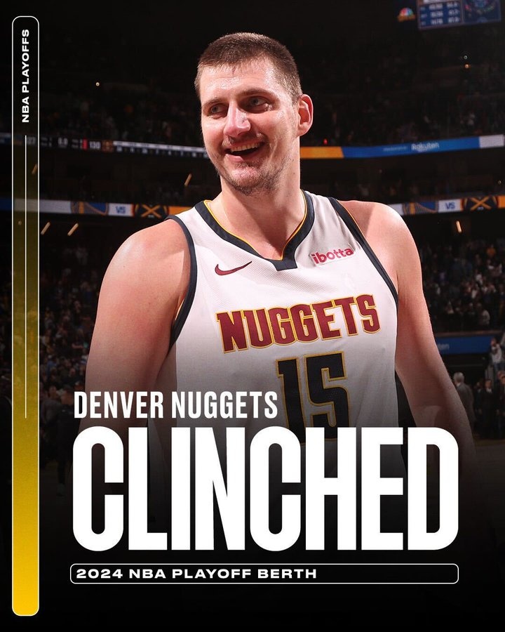 这样一来,掘金本赛季战绩已经来到52胜23负,他们成为西部第一支、联盟第二支(绿军为首支)锁定季后赛的球队!