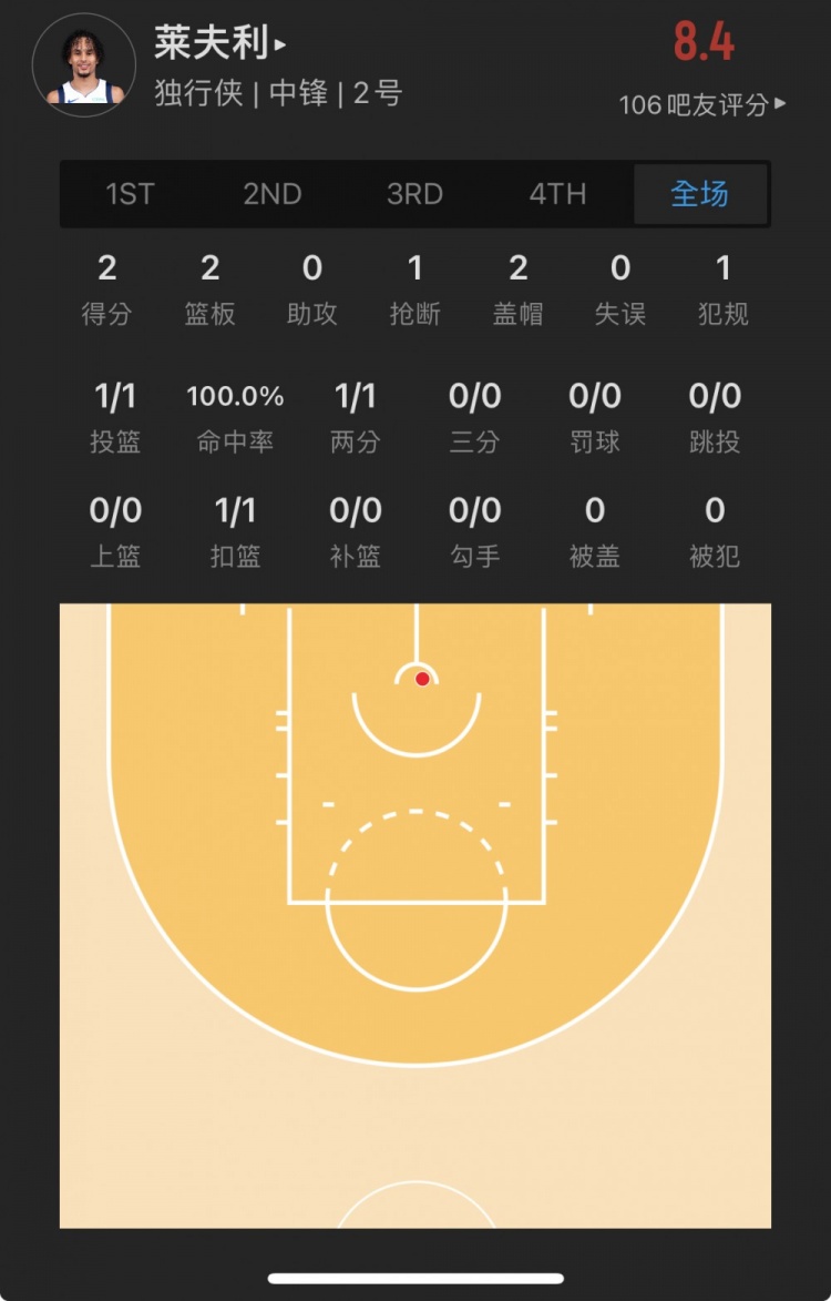 独行侠12号秀 德雷克-莱夫利二世 出战13.3分钟(受伤)