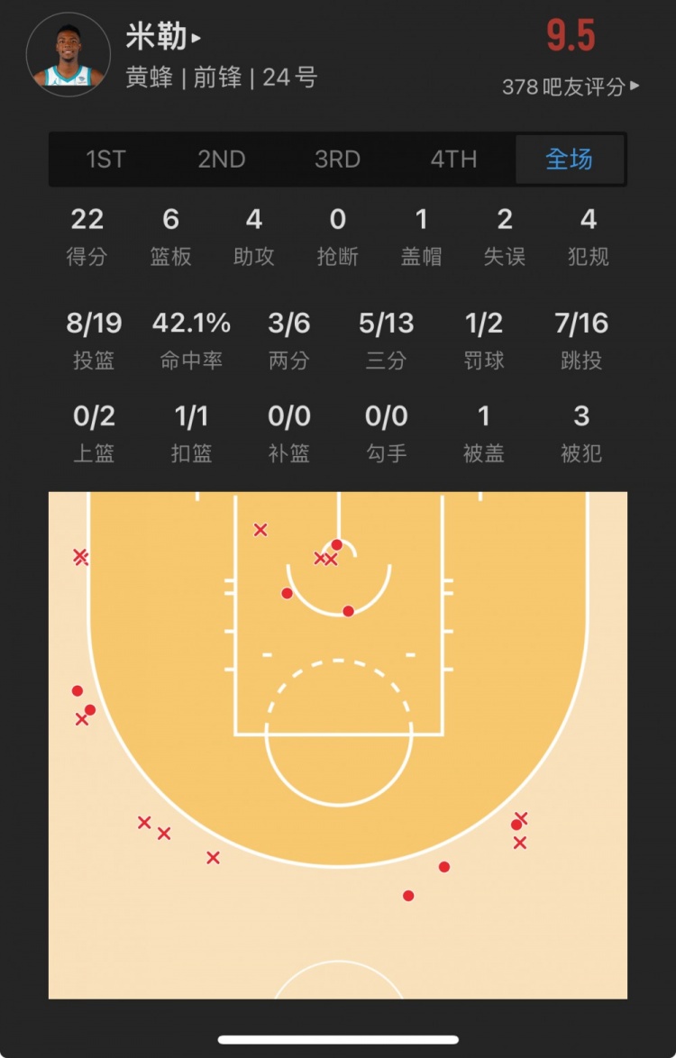 黄蜂榜眼秀 布兰登-米勒 出战39.9分钟