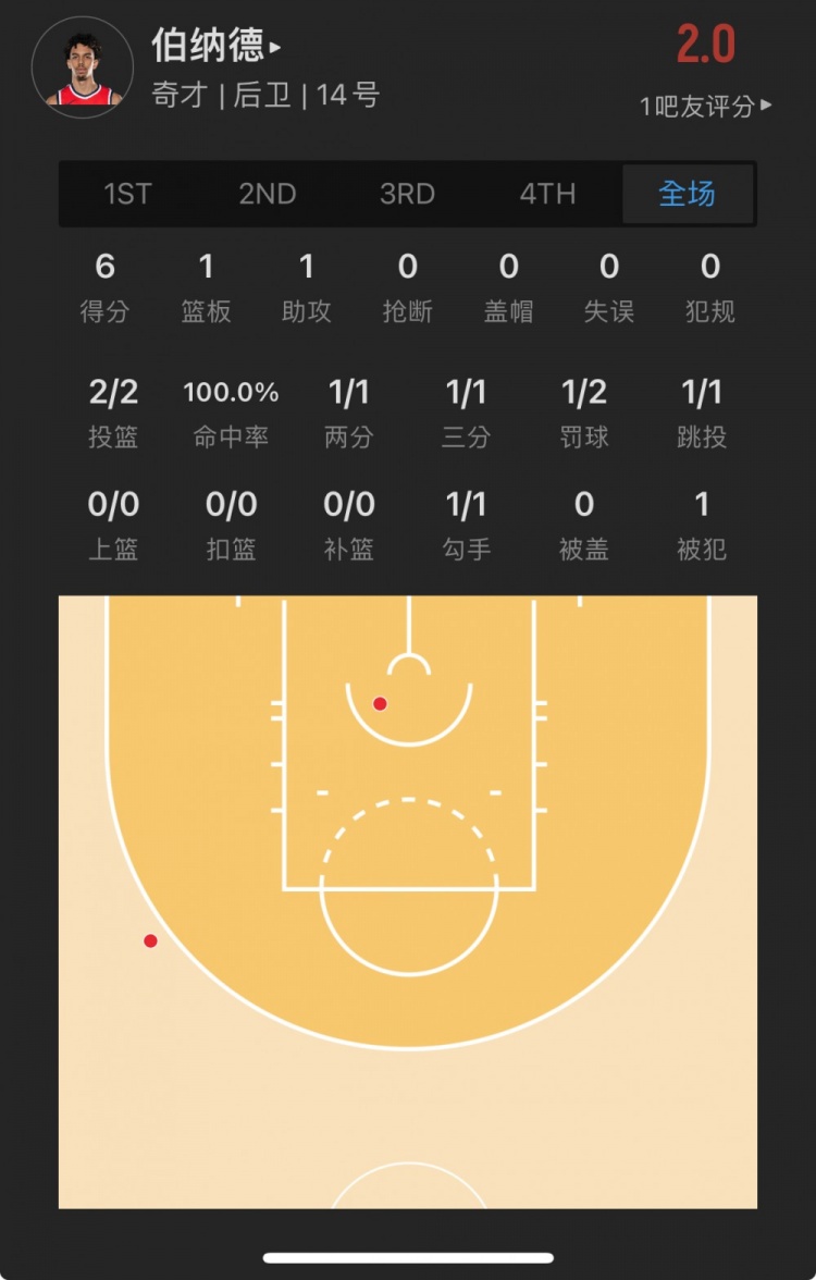 奇才落选秀 朱尔斯-伯纳德 出战8.2分钟