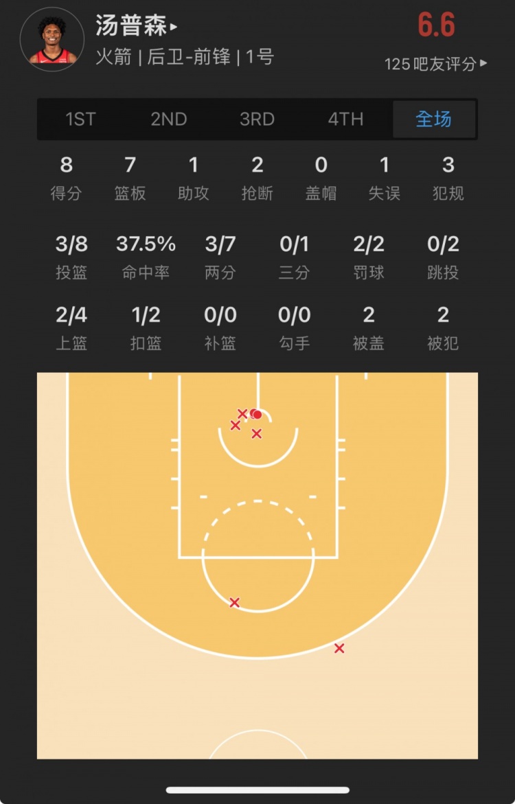 火箭4号秀 阿门-汤普森 出战20.2分钟