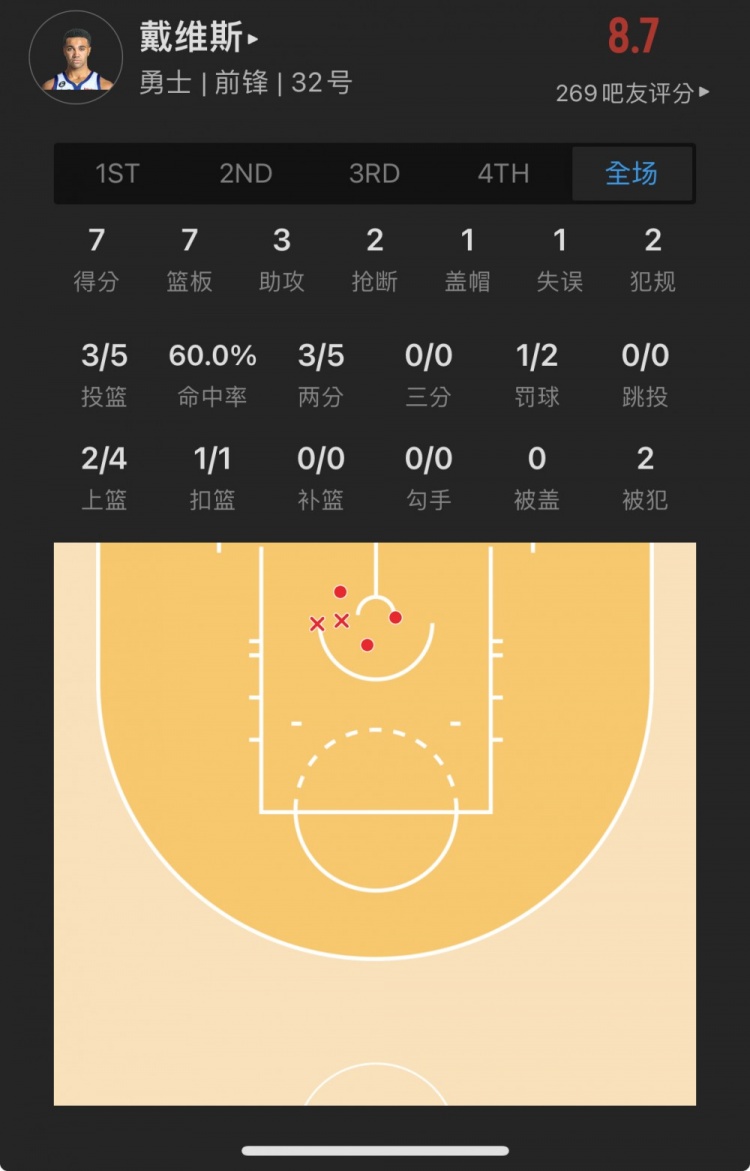 勇士57号秀 特雷斯-杰克逊-戴维斯 出战28.3分钟