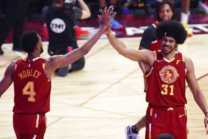 一套是成熟球星内外组合,米切尔和阿伦。米切尔本赛季虽然只打了51场球,但在这51场的大部分时间里,米切尔的表现极为炸裂,是骑士进攻的绝对保障。阿伦打了70场,是骑士4大球星里出勤最好的,可谓骑士内线攻防基本盘;