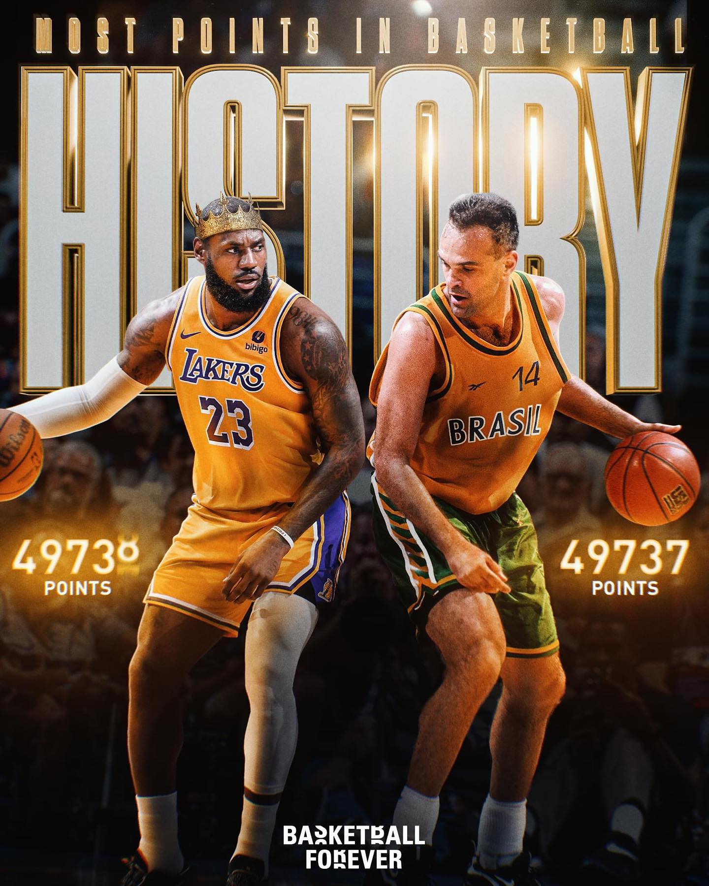 4月3日讯 据美媒basketballforever报道,詹姆斯生涯的总得分超越了巴西传奇球员施密特,成为了篮球历史上得分最多的球员。