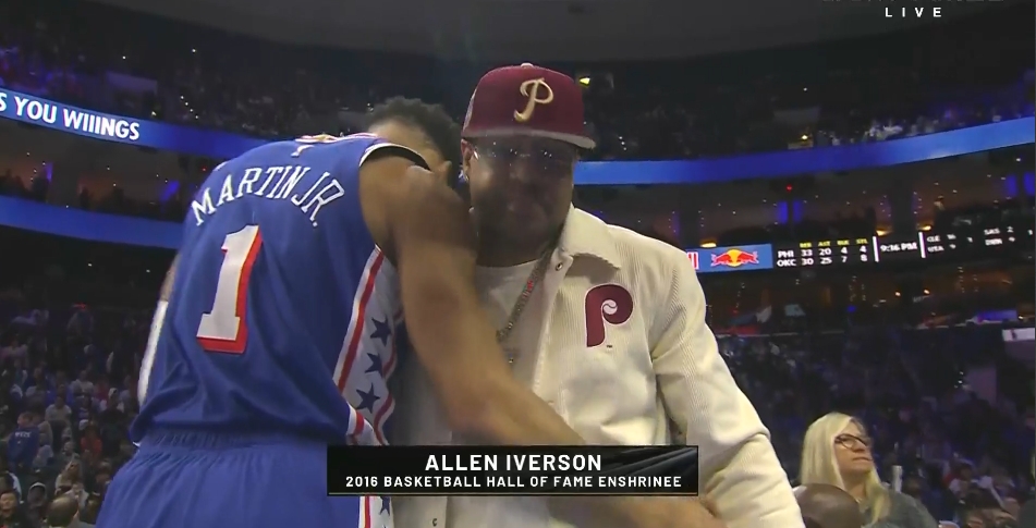 费城宠儿!艾弗森观战76人VS雷霆 现场依旧掌声雷动