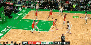 4月4日讯 NBA常规赛,雷霆半场47-61凯尔特人。