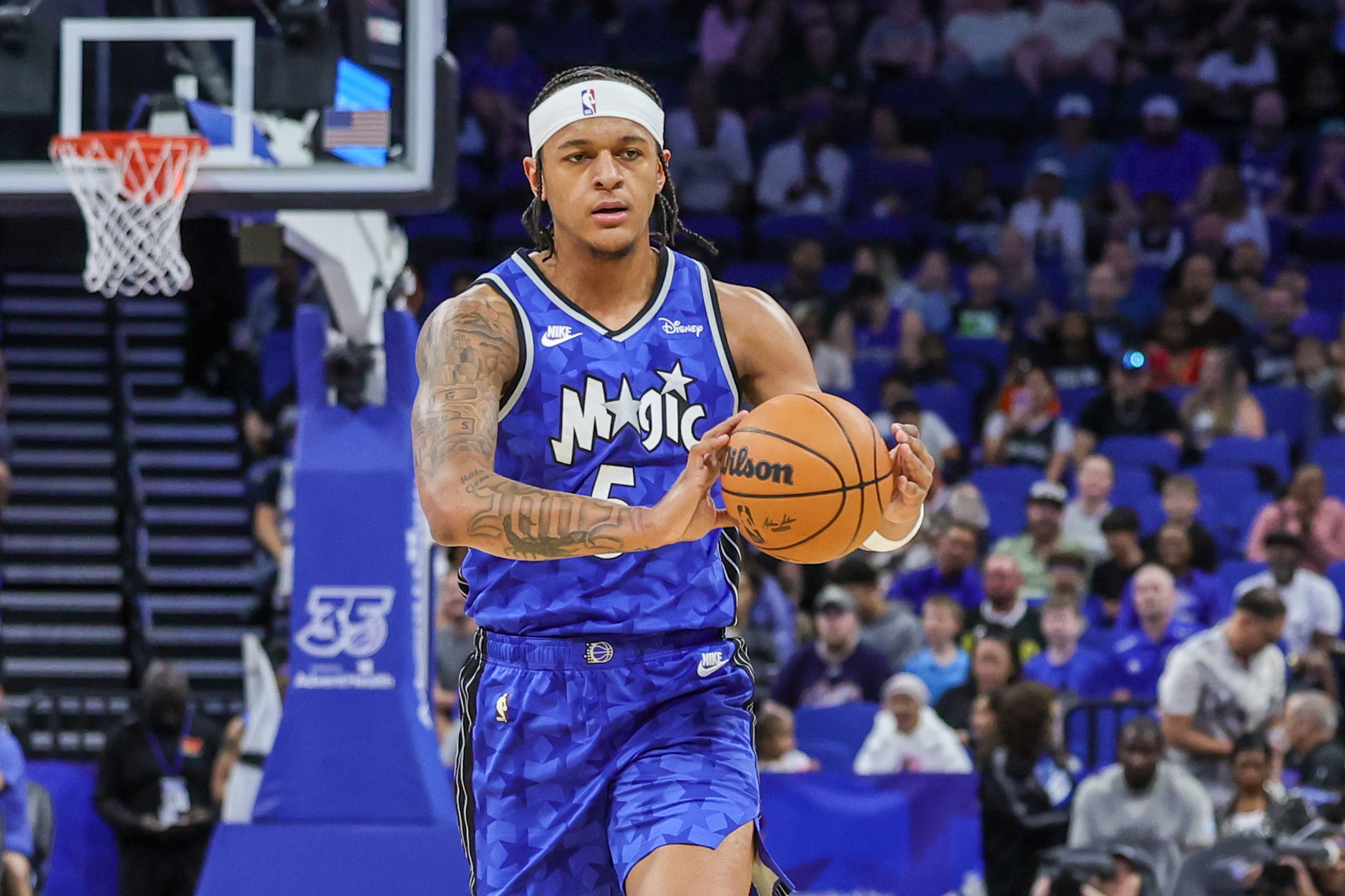本场比赛,魔术球员班凯罗出战38分钟,投篮24中10,三分球6中2,罚球13中10,拿到32分6篮板4助攻1抢断的数据。