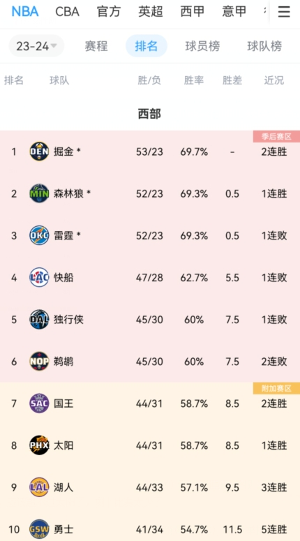 目前湖人排名第九,和第七的国王以及第八的太阳差1个胜场,领先第十的勇士2个胜场。
