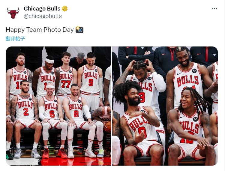 4月5日讯 据公牛随队记者Julia Poe报道,公牛后卫朗佐-鲍尔今日现身球队训练馆,与多诺万亲切交流并参与球队拍照日合影拍摄。