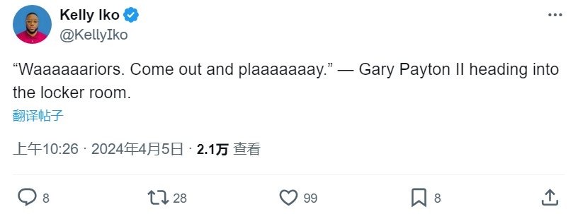 火箭记者Iko报道说,勇士的小佩顿在回更衣室的路上大喊此前伊森的台词:“勇士!出来碰一下子啊啊啊啊啊啊啊!”