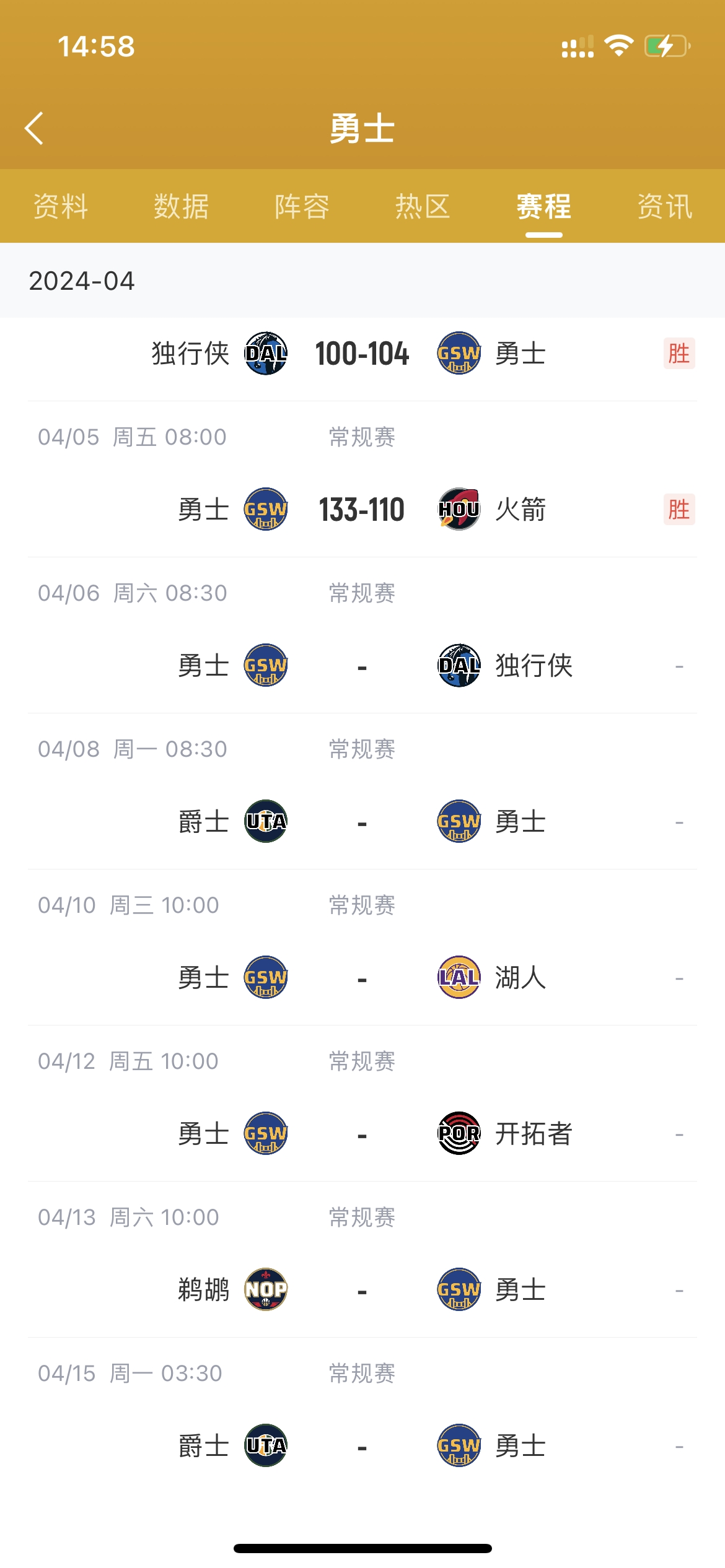 04月05日讯 勇士今日在客场133-110击落火箭。