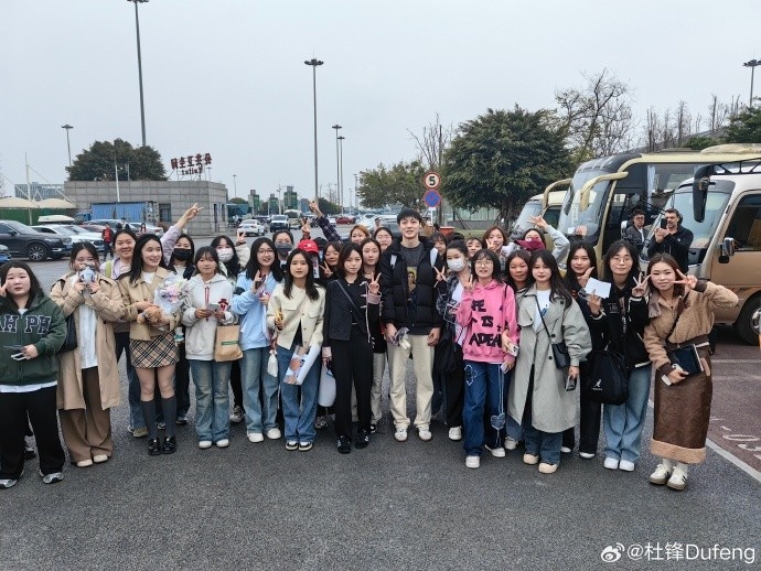 今天,广东男篮主教练杜锋晒出胡明轩与女粉丝们的合照,并写道:“到四川了。”