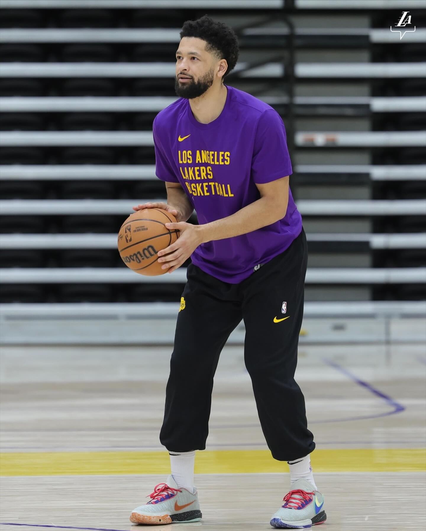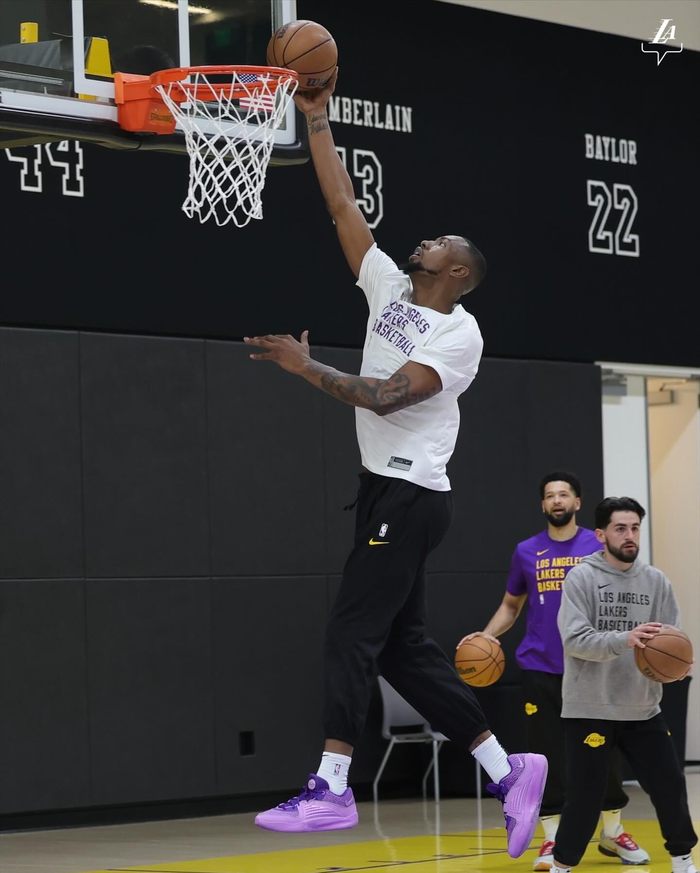 备战湖勇大战!湖人晒训练照:老詹乐呵&贾尔斯出镜 浓眉水拉戴帽