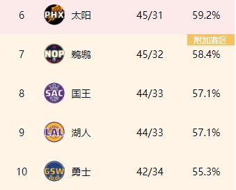 鹈鹕本场比赛英格拉姆和锡安均缺阵,他们的战绩来到45胜32负,继续排在西部第7,但仅领先身后的国王和湖人1个胜场。