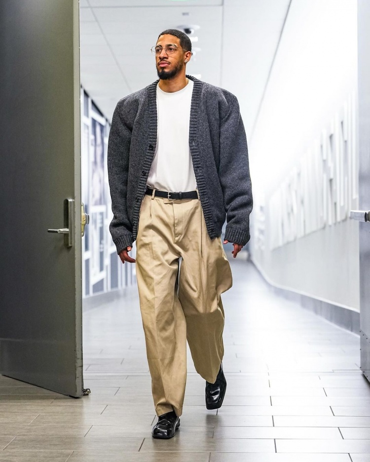 里面穿了铠甲吗哈利伯顿针织衫休闲穿搭 肩宽有些离谱
