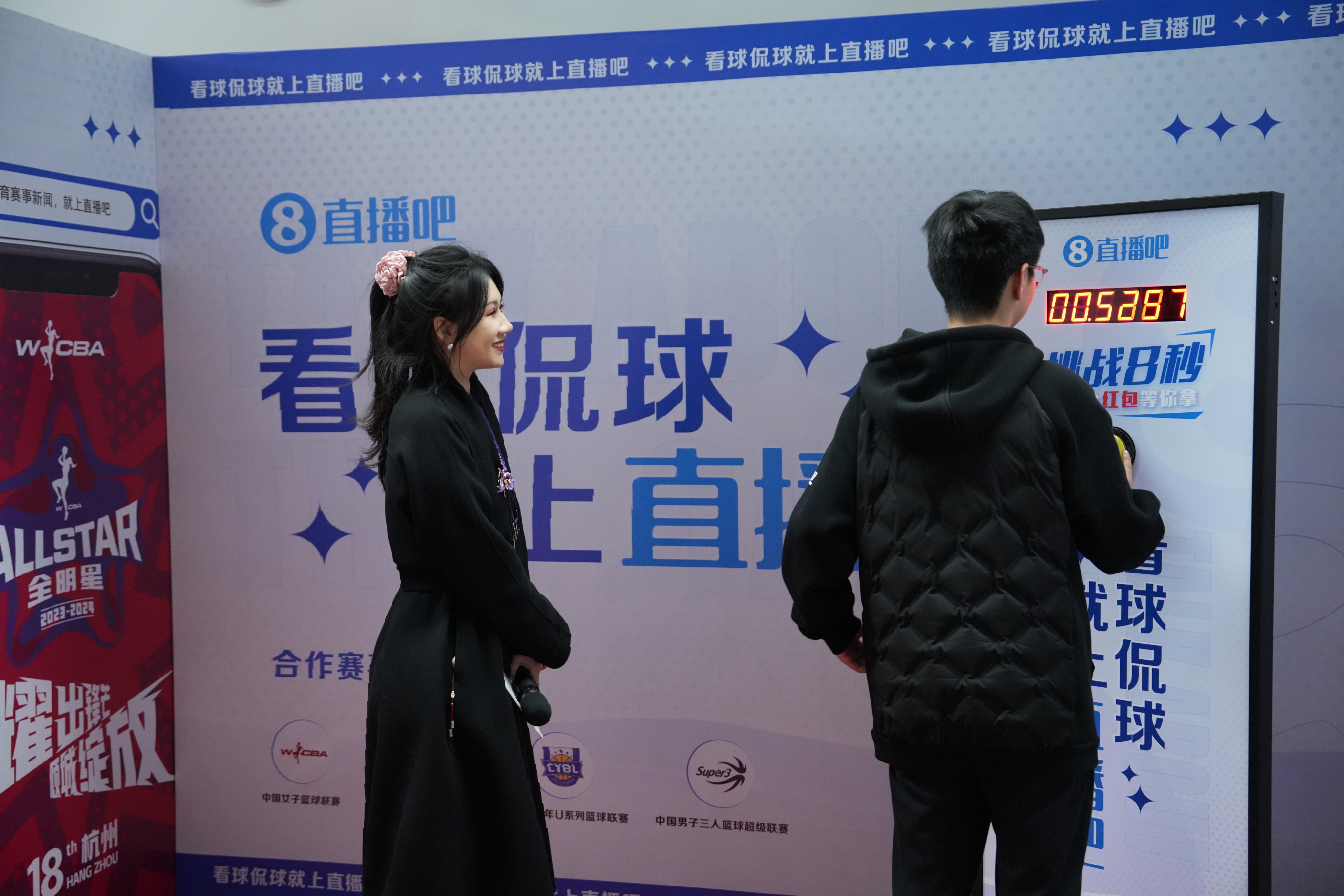 本次全明星期间,在体育馆二层A1门入口处设置了“挑战8秒”游戏互动环节,欢迎各位吧友前来打卡,参与游戏就有机会获得钥匙扣、帆布包等精美好礼,更有现金红包大奖等你来拿!另外,还有可能在展台偶遇明星球员,小吧在这里等你哦~