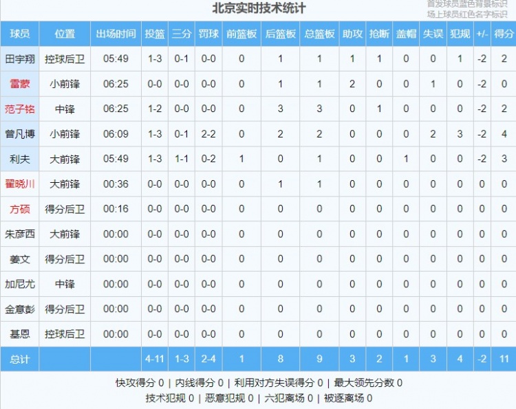 目前比赛刚刚进行半节,北京球员曾凡博就领到个人三犯,投篮3中1拿到4分2篮板的数据。
