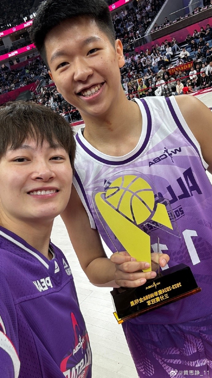 黄思静晒出一组现场照,并配文写道:“全明星周末圆满开心、我的闺蜜舍友队友杨力维她也很开心。谢谢大家的支持。”