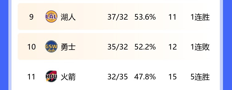 在输球后,勇士的战绩来到35胜32负,继续排在西部第10,今天没比赛的火箭(32胜35负)把胜场差缩小到3个。