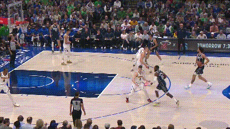 穆雷先挡拆找到东契奇,之后再跟约基奇挡拆,于是防穆约挡拆的就成了东契奇+克勒贝尔——好么,独行侠场上动作最迟缓的两个人。