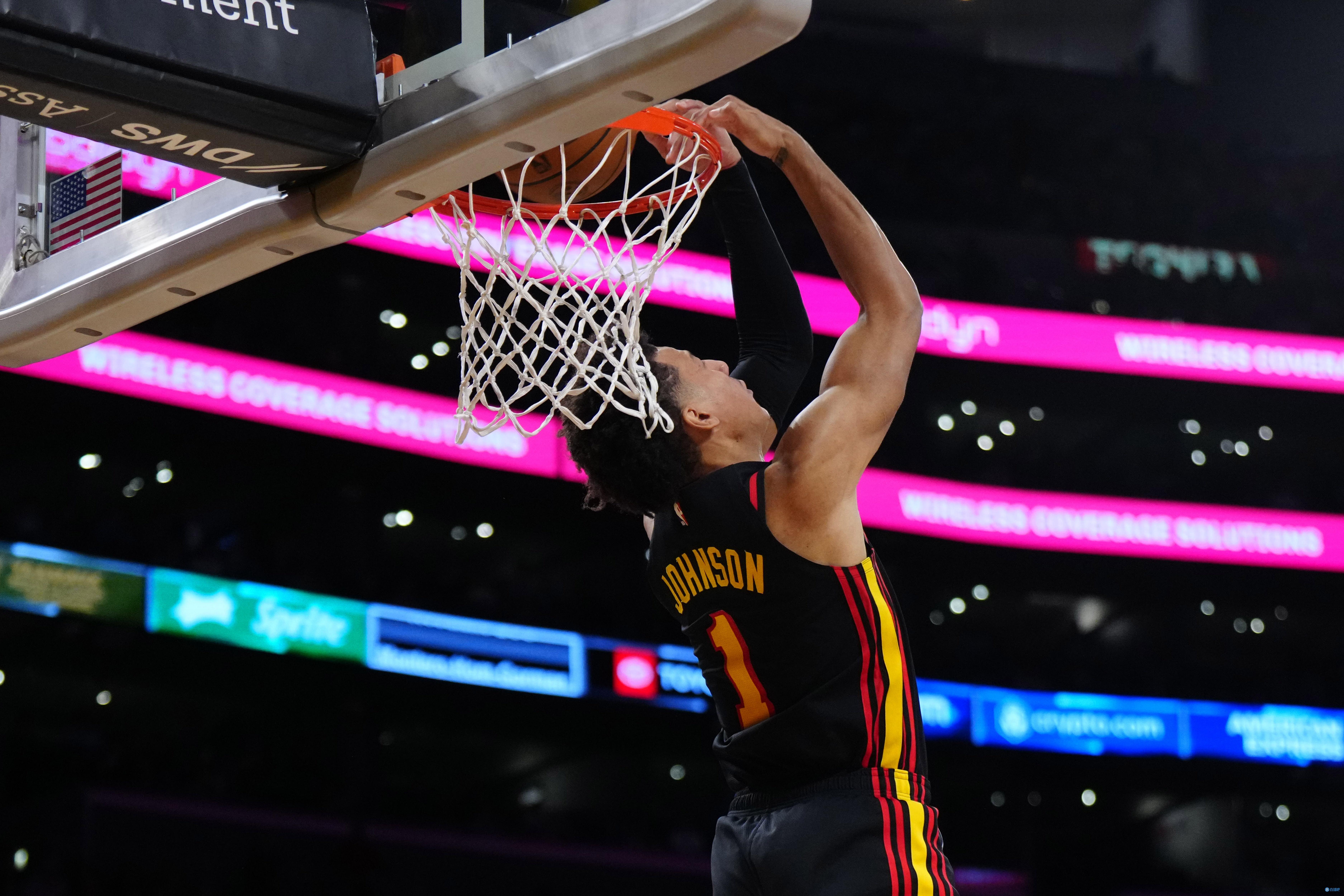 PF杰伦-约翰逊:16.1分8.6篮板3.5助攻,命中率51.3%,三分命中率35.3%