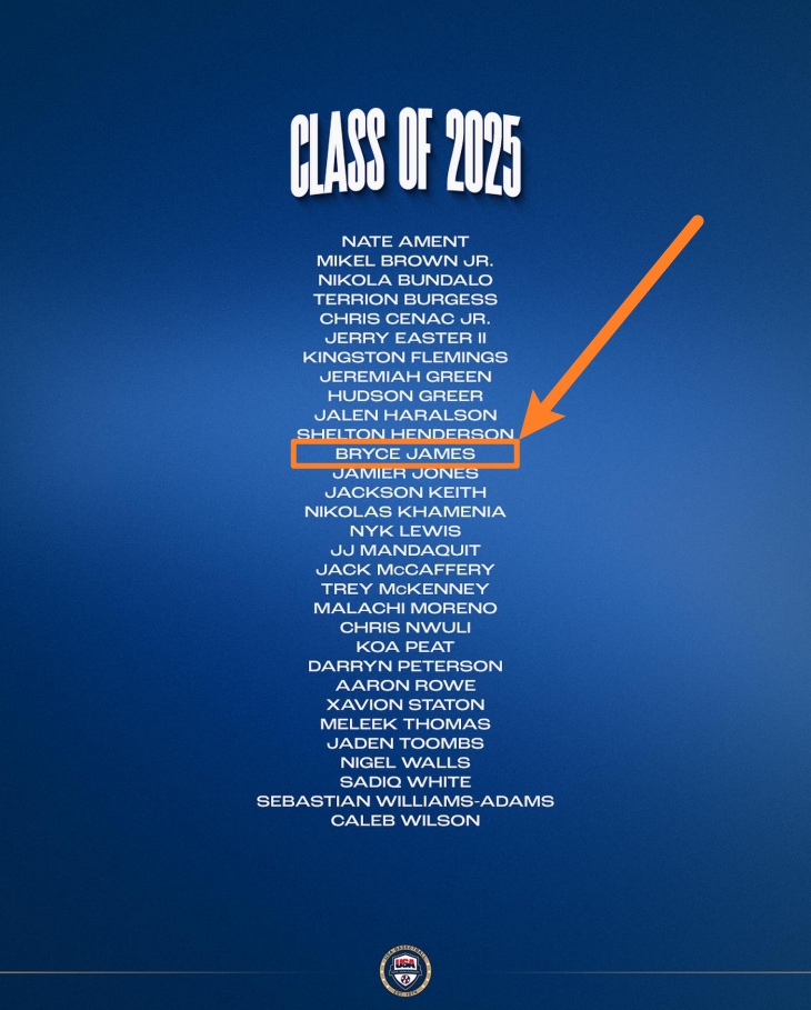 湖人球星詹姆斯的小儿子布莱斯-詹姆斯(16岁),作为2025届的高中毕业生,入选了本次美国篮球国家队青少年迷你训练营的名单。詹姆斯也在个人社媒转发祝贺写道:“恭喜你入选呀!小詹”