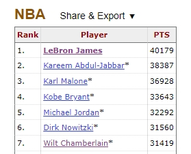 NBA历史得分榜前七