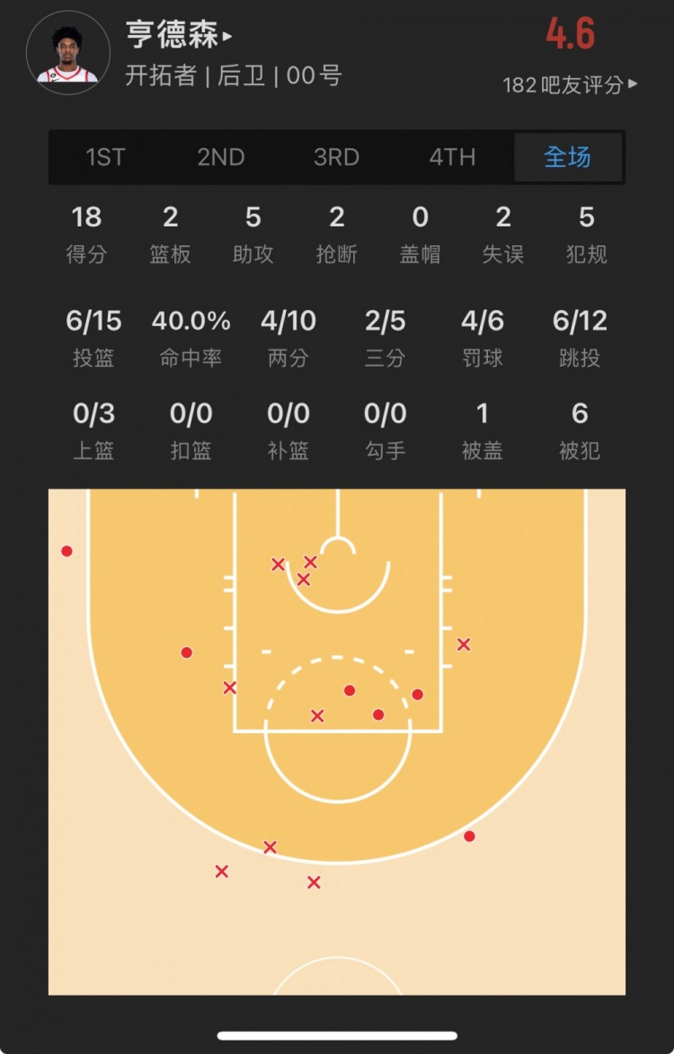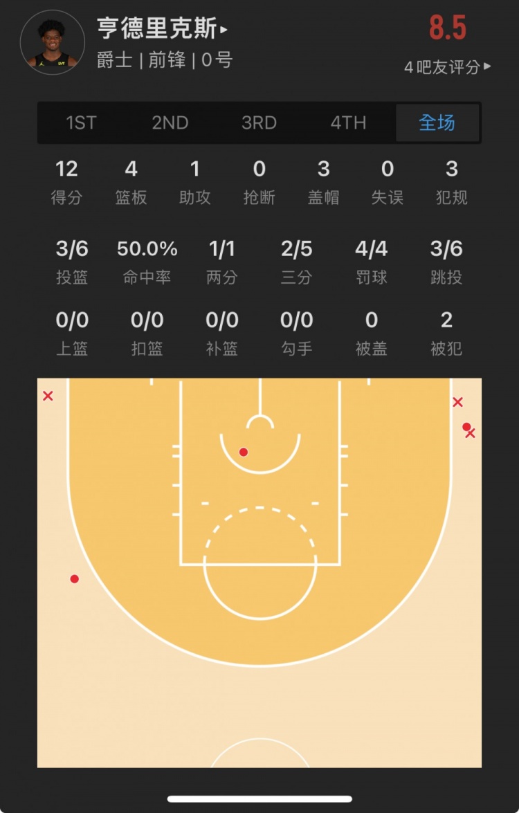 爵士9号秀 泰勒-亨德里克斯 出战24.2分钟