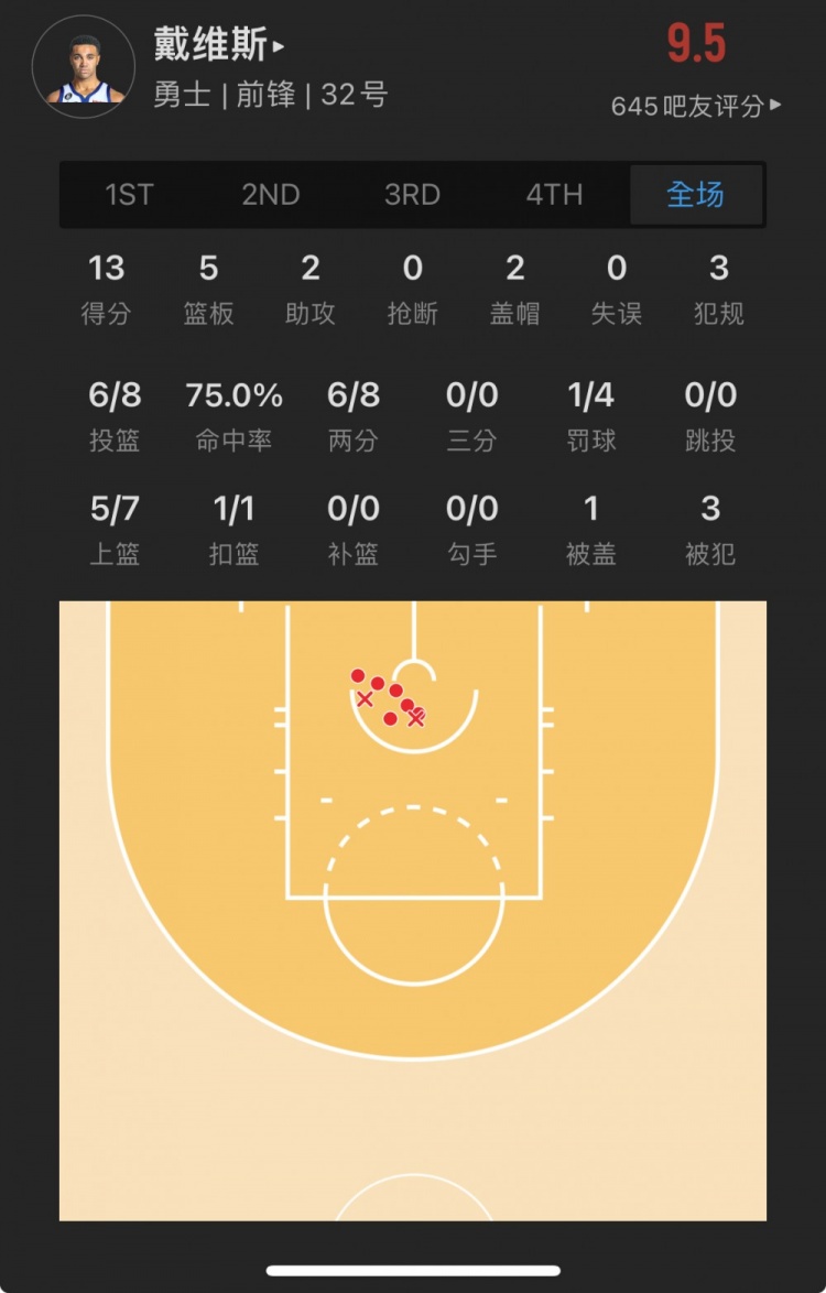 勇士57号秀 特雷斯-杰克逊-戴维斯 出战25.5分钟