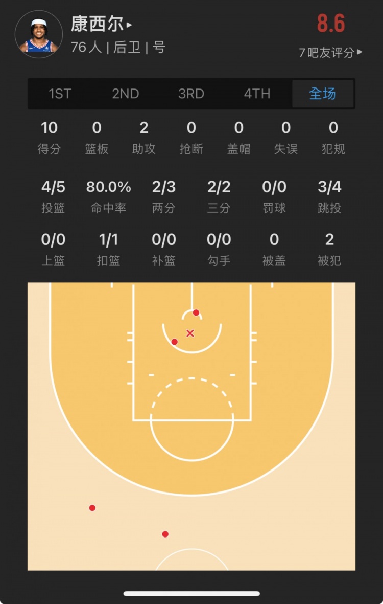 76人落选秀 里基-康西尔 出战12.0分钟