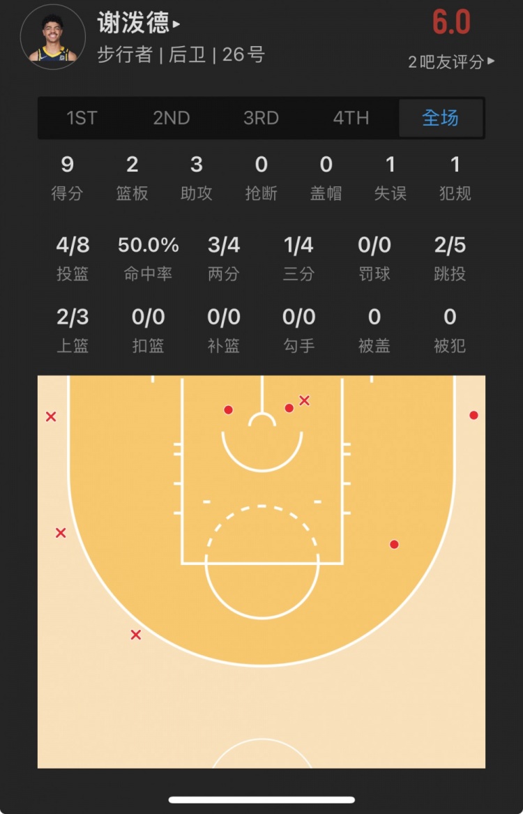 步行者26号秀 本-谢泼德 出战21.8分钟