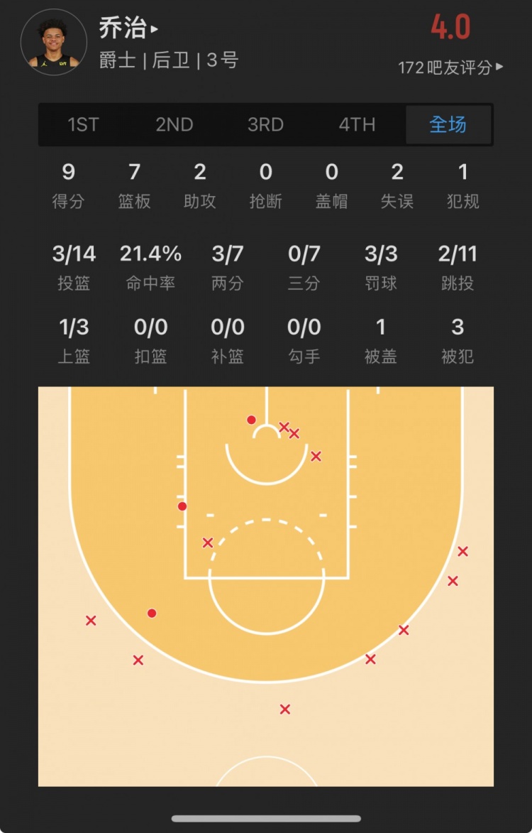 爵士16号秀 基昂特-乔治 出战28.0分钟