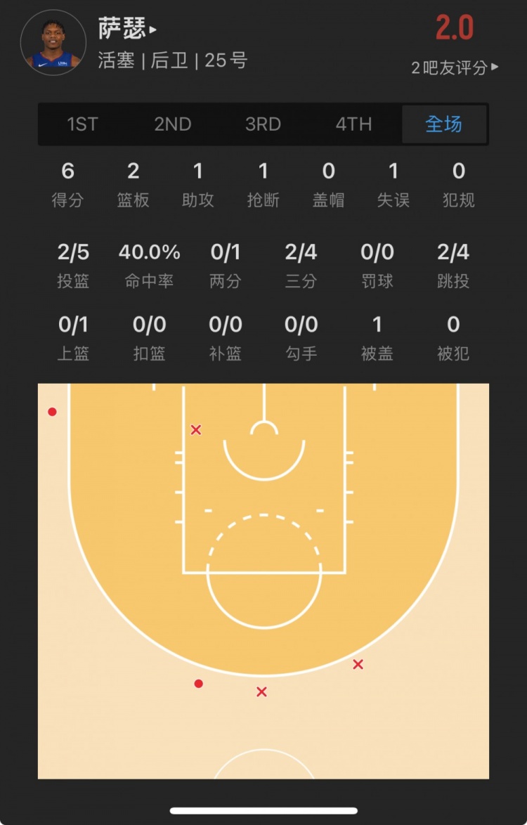 活塞25号秀 马库斯-萨瑟 出战19.7分钟