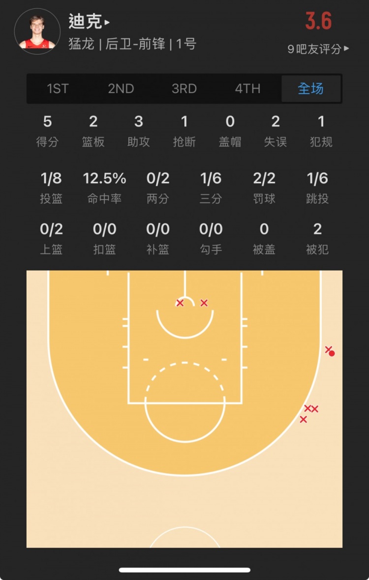 猛龙13号秀 格雷迪-迪克 出战32.2分钟