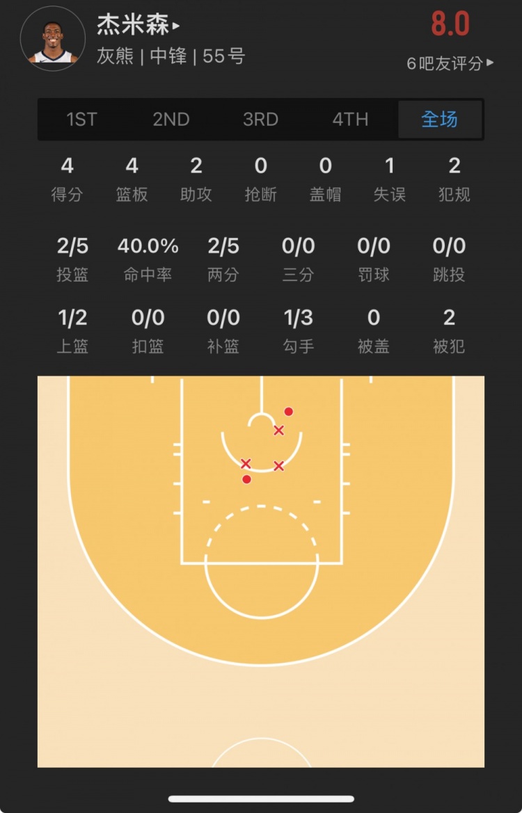 灰熊落选秀 特雷-杰米森 出战25.0分钟