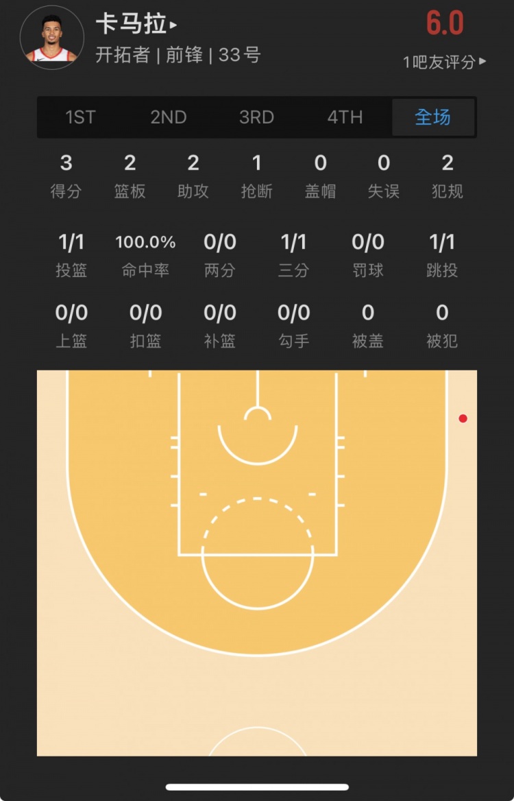 开拓者52号秀 图马尼-卡马拉 出战17.8分钟