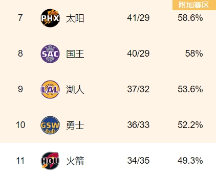 赛后,第11的火箭与第10的勇士之间的胜场差距仅剩2场,火箭与勇士都还剩下13场常规赛。