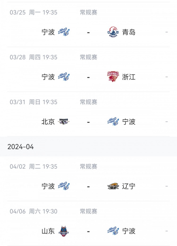宁波剩余赛程: