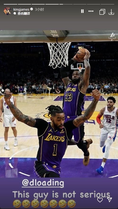 低配詹韦连线!詹姆斯转发多张扣篮照 拉塞尔极其抢镜