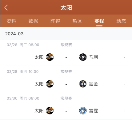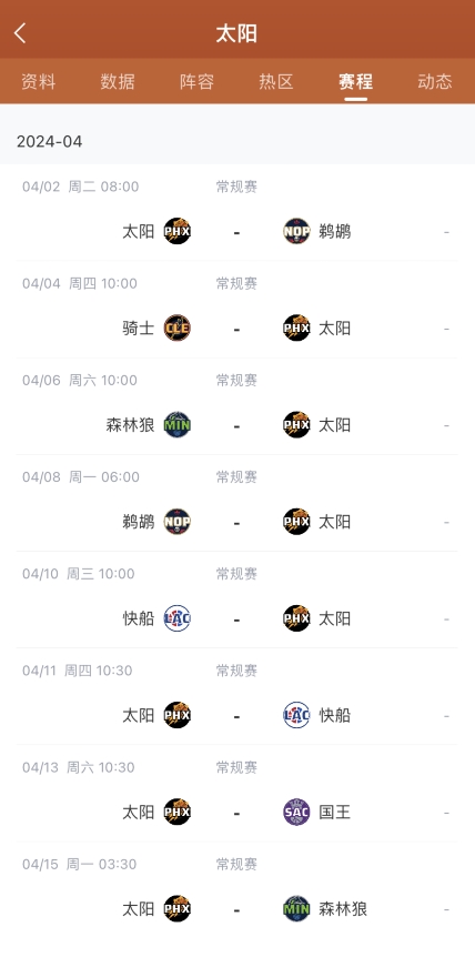 太阳本赛季剩余常规赛赛程一览:
