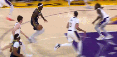 黄油手啊~詹姆斯不停球精妙传球八村塁 后者转身时没接住球