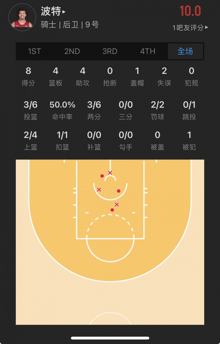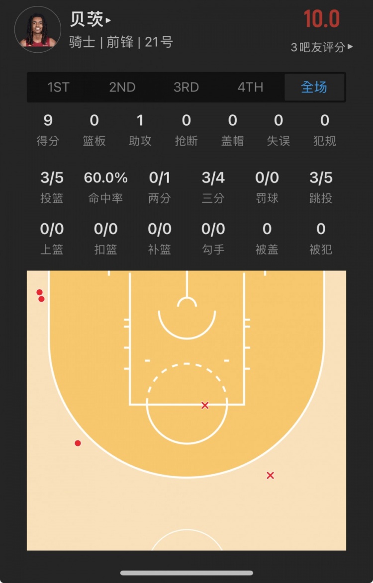 骑士49号秀 埃莫尼-贝茨 出战10.5分钟